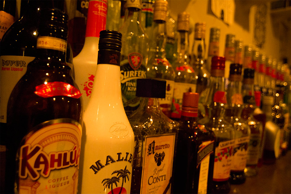 • カウンター奥にある様々なお酒1